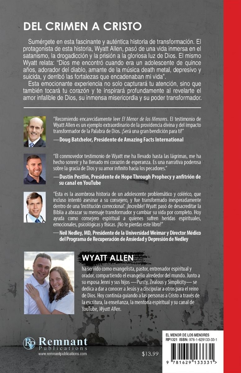 Este libro es mucho más que un testimonio: es una invitación a la esperanza y a la renovación para todos aquellos que enfrentan heridas profundas. Perfecto para jóvenes y adultos que buscan inspiración real, El Menor de los Menores muestra cómo el poder del amor y la fe puede transformar incluso las circunstancias más difíciles.
